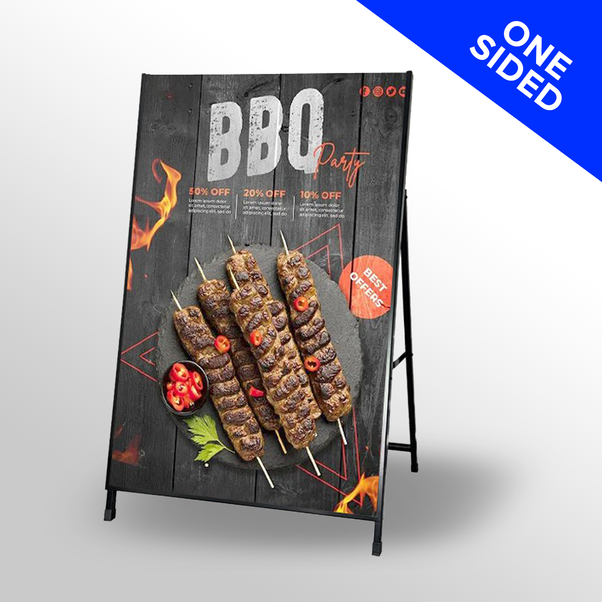 A-Frame Signs are an effortless way to promote and advertise your business, helping it stand out and be noticed in the crowd. Ideal for indoor and outdoor settings, these signs are available in different sizes and can be customized to fit your needs.